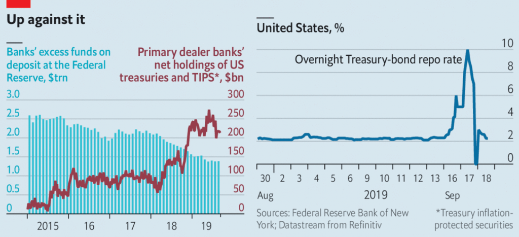 Last month in mid-September, United States investment banks had liquidity needs that haven’t been so exaggerated to such an extent since the 2008 financial crisis. Using history as our guide to help shape our view of the future, it wouldn’t be prudent to overlook the significance of the securities repurchase, or “repo”, market developments over the past month without first giving consideration to their significance in the most recent financial panic. Prior to the massive Credit Crunch that caused the crisis in 2008, Bear Stearns went around Wall Street asking for such large sums of cash in the overnight lending markets from other banks (bank-to-bank) that the others simply did not have on them to lend out. Since Bear was turned away by the other banks, it made a notorious walk of shame that was frowned upon by investment banks to the “discount window” from the Federal Reserve for the overnight loans (central bank-to-bank) to cover their business operations plus expenses. One of the major downsides of doing this besides other banks being notified of this activity was that the lending rate comes at an interest rate typically about one percentage point above the Federal Funds Target rate.