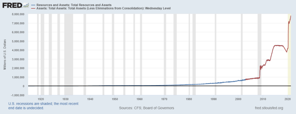 The truth may be that all of the assets and indexes that have seen record highs following March 2020 are not going up as much as the US Dollar’s value is going down. More than a decade after the GFC’s bailouts and easy money coming from the Fed, it is almost hard to find an asset or index that has not outperformed the dollar. If you look at it from another lens in terms of the total assets on the Federal Reserve’s balance sheet, then you may be able to paint a different picture. Price it all in bitcoin and then zoom out, the picture becomes clear: almost everything is trending towards zero in terms of BTC.