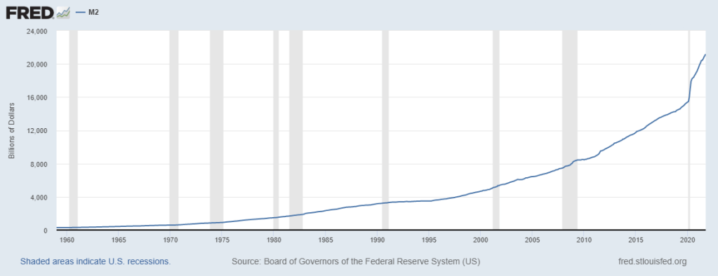 Ordinarily, the issuance and supply of the US Dollar has been relatively stable with a steady rate of growth and inflation that was averaging around 2% annually. Using emergency powers and taking temporary measures in response to the COVID-19 pandemic, the Federal Reserve System Board of Governors with Congress approved a flood of US Dollars into the traditional financial system. They simply marked up accounts on a central database of member banks and institutions, or in other words they created money from nothing. Fed governors went on parade over national television about their ability to do so infinitely.